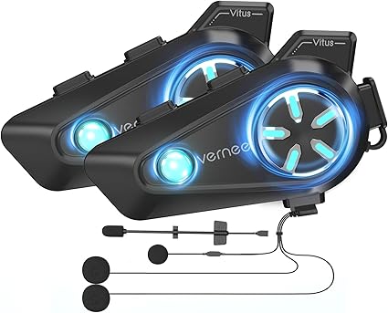 1. Vernee Motorcycle Helmet Bluetooth Headset Speakers, 4 Riders 2Km Intercom,