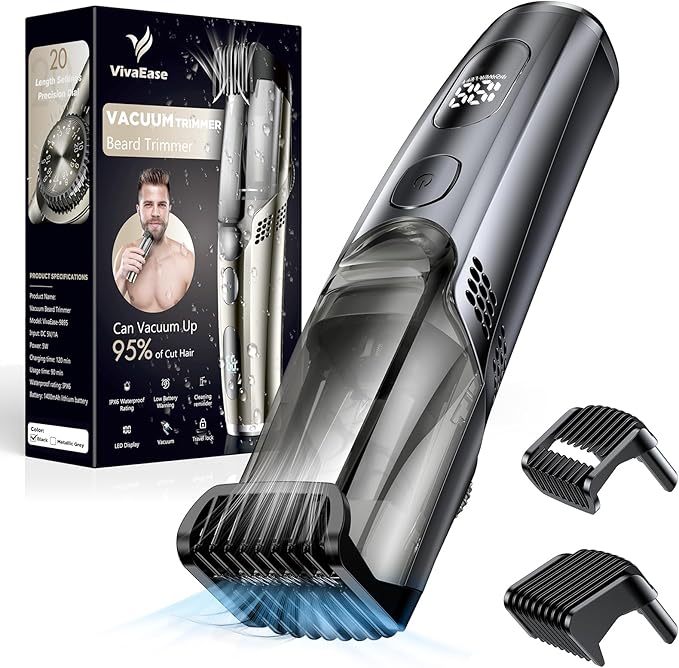 5. Vacuum Beard Trimmer for Men – 2-Speed Adjustable Suction &