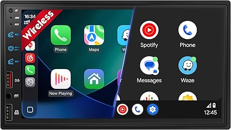 11. Double Din Car Stereo with 7″ HD Touchscreen, Wireless Apple