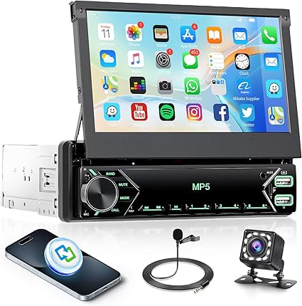 Upgrade your car audio experience with the 2026 7-inch Motorized Flip-Out Single Din Car Stereo featuring Apple CarPlay. This sleek and innovative unit combines advanced technology with user-friendly design, delivering clear visuals and hands-free smartphone integration. Its motorized flip-out screen adds both style and convenience to your dashboard setup.