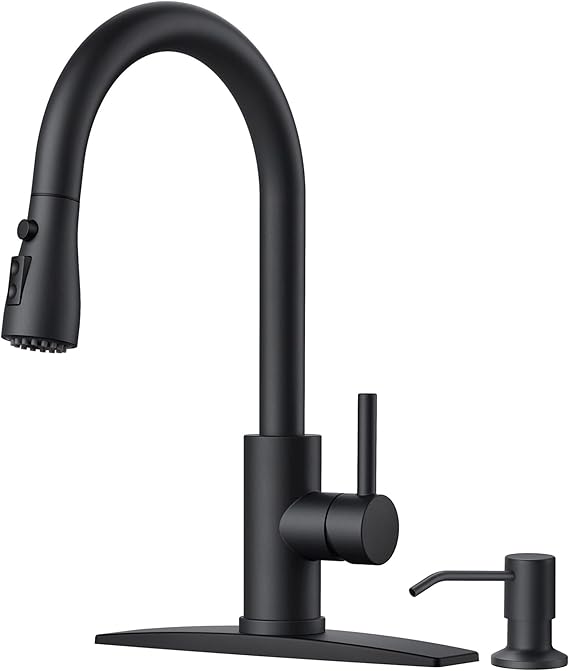 10. FORIOUS Black Kitchen Faucet with Soap Dispenser and Pull Down