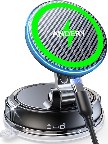 With its robust suction mechanism and superior magnetic force, the ANDERY MagSafe Car Mount Charger provides unmatched convenience and reliability for iPhone users. It combines ergonomic design with effective charging for a safer, more enjoyable driving experience.