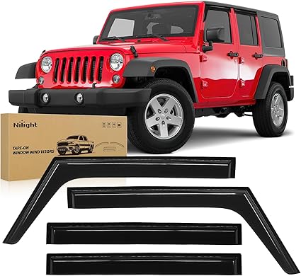 The Window Visors Rain Guards fit seamlessly on Jeep Wrangler JKU models made between 2007 and They are crafted from high-quality, shatterproof materials that resist UV rays and scratches effectively. This resilience helps maintain their clear appearance over time without cracking or chipping.